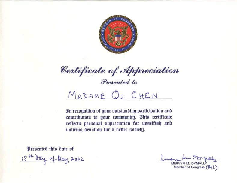 美視集團副董事長陳頎女士頒發為中美文化交流作出積極貢獻的榮譽證書