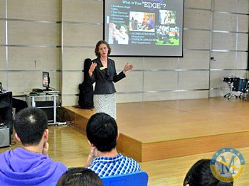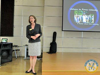 2012年10月10日,美國福爾曼大學亞洲區招生顧問Martha Kimmel女士應邀到我校國際項目部禮堂為高中生做大學升學現場指導。這是Kimmel女士第三次來校為我校高中學生做招生專題演講。 Kimmel女士向我校學生介紹了如何申請福爾曼大學以及與該大學相關的專業選擇問題。同時,她還問及學生們的興趣與愛好。通過Kimmel女士對福爾曼大學的介紹,同學們受益匪淺。