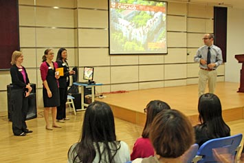 美國芝加哥大學、美國萊斯大學、美國范德堡大學的三位招生官于2013年10月14日應邀來我校國際項目部為國際項目部的同學們做招生宣講。我們也邀請了中美英才班的同學們參加。通過三位招生官的精彩演講,同學們受益益頗豐。