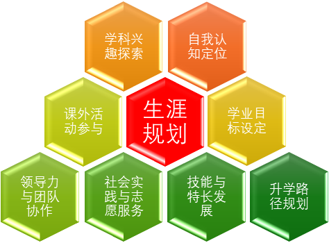 我校特別重視學生的生涯規劃,分年齡設立了包括自我認知定位、學業興趣探索等八個維度的生涯規劃課程體系。