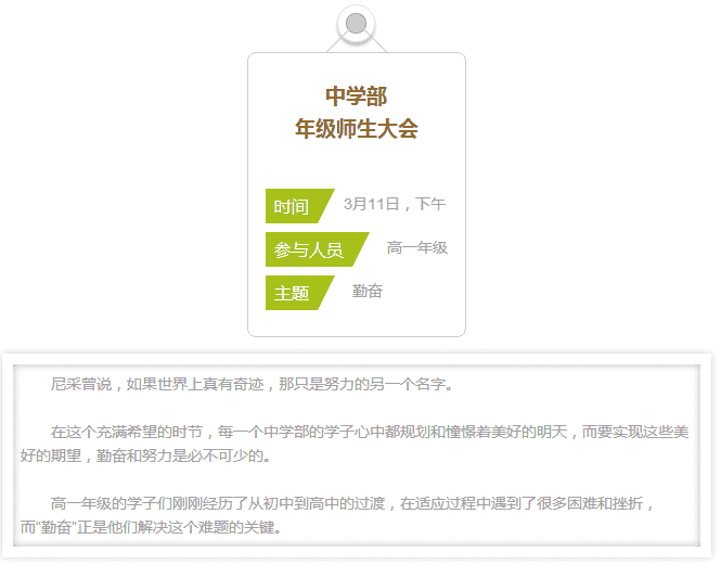 從古之名人匡衡、蘇秦,到近代典范海倫·凱勒、屠呦呦,各班同學代表紛紛上臺演講。一個個或遠或近的真實故事,讓演講者與聽眾一次次被打動,勤奮與努力帶來的不一樣的人生體驗令人精神為之一振。學子們懇切地呼吁大家:以勤為訓、勤懇做人、勤奮學習、勤儉生活、勤勞積累、快樂成長。