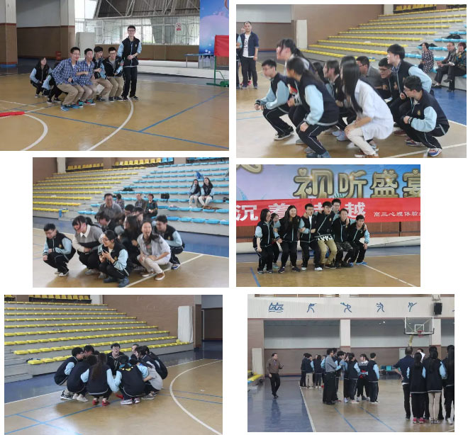 4月22日,中學部高三師生在體育館舉辦了主題為“挑戰、沉著、超越”的體驗式心理調節培訓活動。