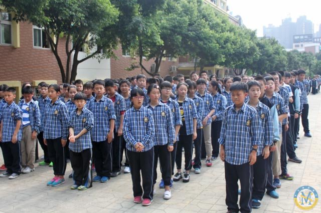 在科任老師的帶領和樓道管理老師的指引下,中學部學子順利疏散到教學樓外的空地,并且按照要求站立在指定位置。