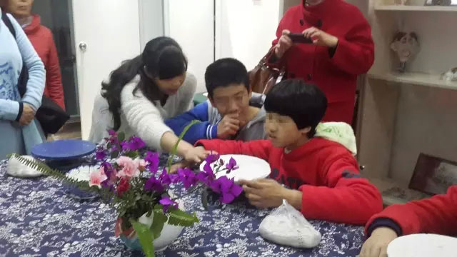 在制作作品的過程中,我發現,雖然自閉癥的孩子不善言談,但他們卻有著很高的藝術天賦。他們很追求完美,低著頭認真完成自己的作品。從偶爾支支吾吾的回答中,我能體會到他們世界中的那片天地,如此干凈美好。
