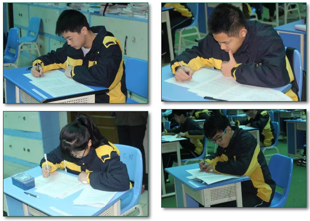 Hey,對(duì)手,我們來(lái)一場(chǎng)真正的實(shí)力較量吧!Hey,親愛的自己,在公平的戰(zhàn)場(chǎng)全力以赴吧!隨著九點(diǎn)考試鈴聲響起,中國(guó)部·中學(xué)高一年級(jí)全體考生便開始了這一場(chǎng)別開生面的期中考試。