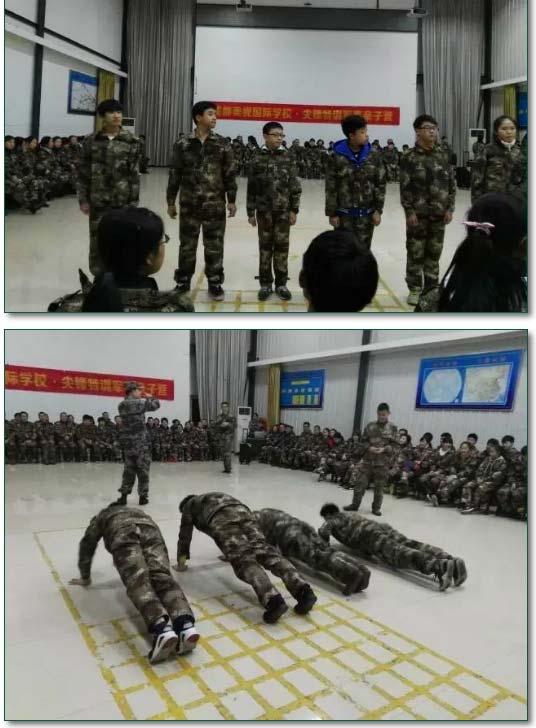 二 集合 嚴格的懲處制度 領悟團隊重要性 當真是軍事拓展訓練呢! 發了訓練服后只有10分鐘的換裝時間,就必須集合!對于我們這些愛美的媽媽們,時間是相當緊呢! 但為了不影響我們這個新組合的家長和孩子的小團隊,我們也動作麻利地囫圇換完服裝沖下樓去。 每個人不準時、不認真聽訓導都是要受懲罰的。而且每個班成員犯的錯都要由臨時班長來承擔(做50個俯臥撐)。我們心疼孩子們,便要嚴格管好自己的嘴,準時、聽從指揮——這是團隊的重要性。