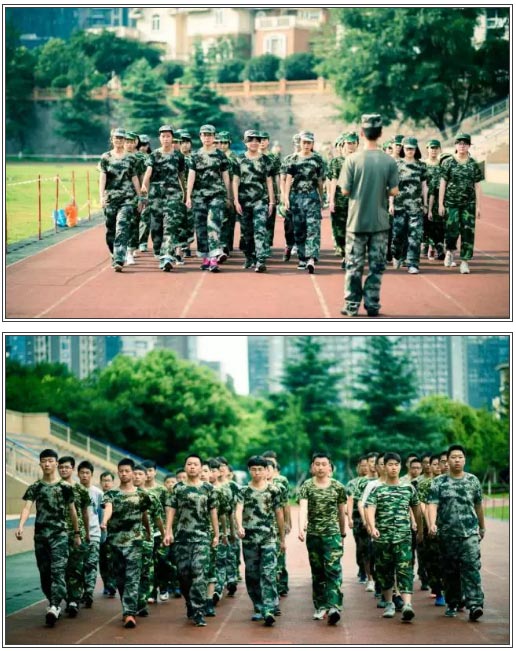 27日下午5點,初一、高一的學子們身著迷彩服,整齊劃一的在操場整隊集合。
