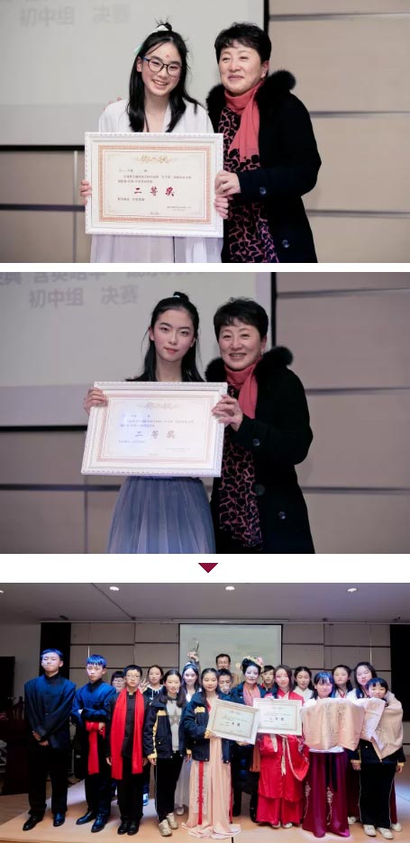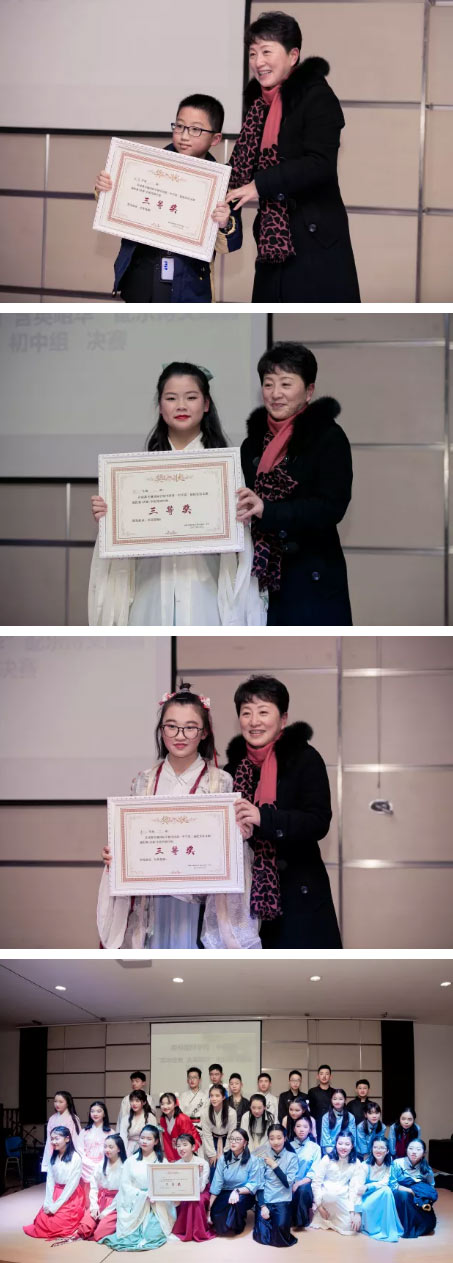 銜接班的《沁園春·雪》、初一一班和四班的《李白組詩》、初二二班的《蒹葭》榮獲三等獎。