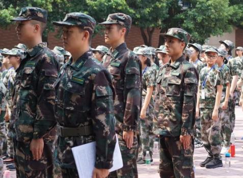 8月27日上午11點,還沒來得及和同學寒暄,和家長告別的學子們,便穿著整齊地迷彩服,站立在了旗臺前,參加本次的軍訓動員會。