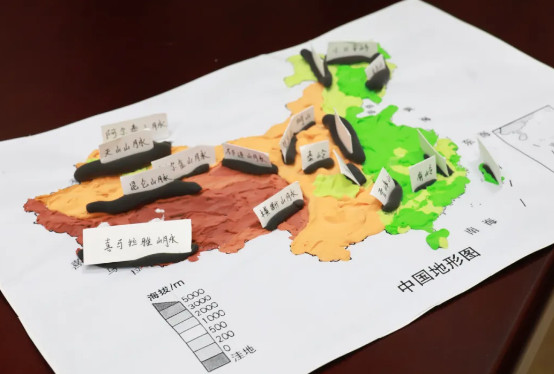 通過動手制作,同學們將課本中的等高線、地形區等抽象知識轉化為立體模型,加深了對我國西高東低地勢特征及其對氣候、河流影響的理解。