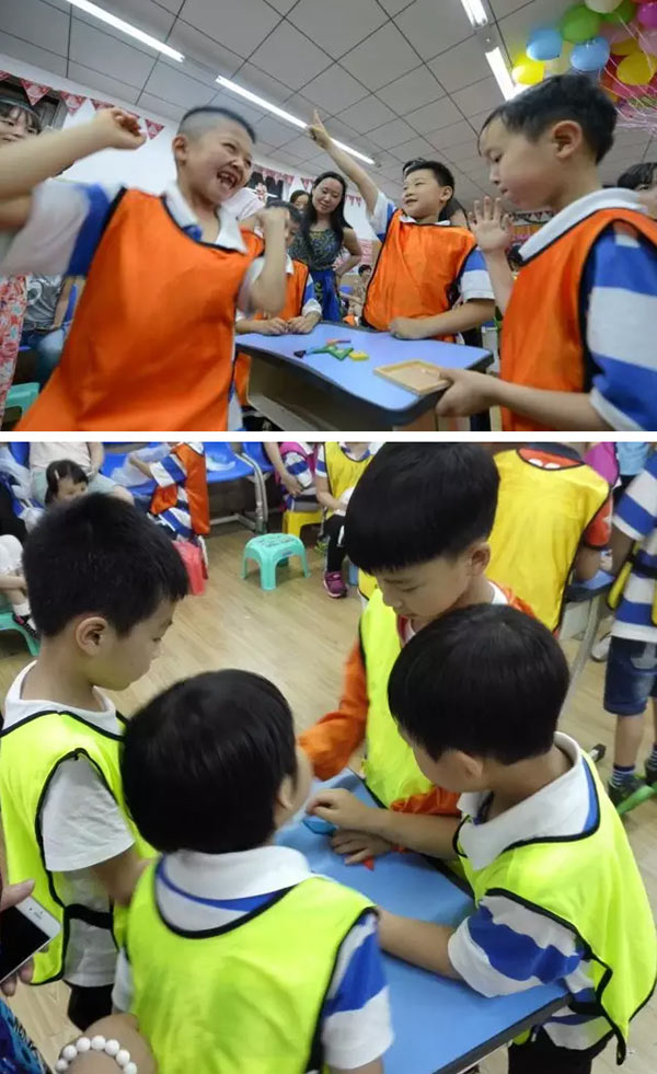 小朋友們有的在幫小伙伴們穿背心,有的在互相鼓氣加油,一個個的神氣勁兒溢于言表。