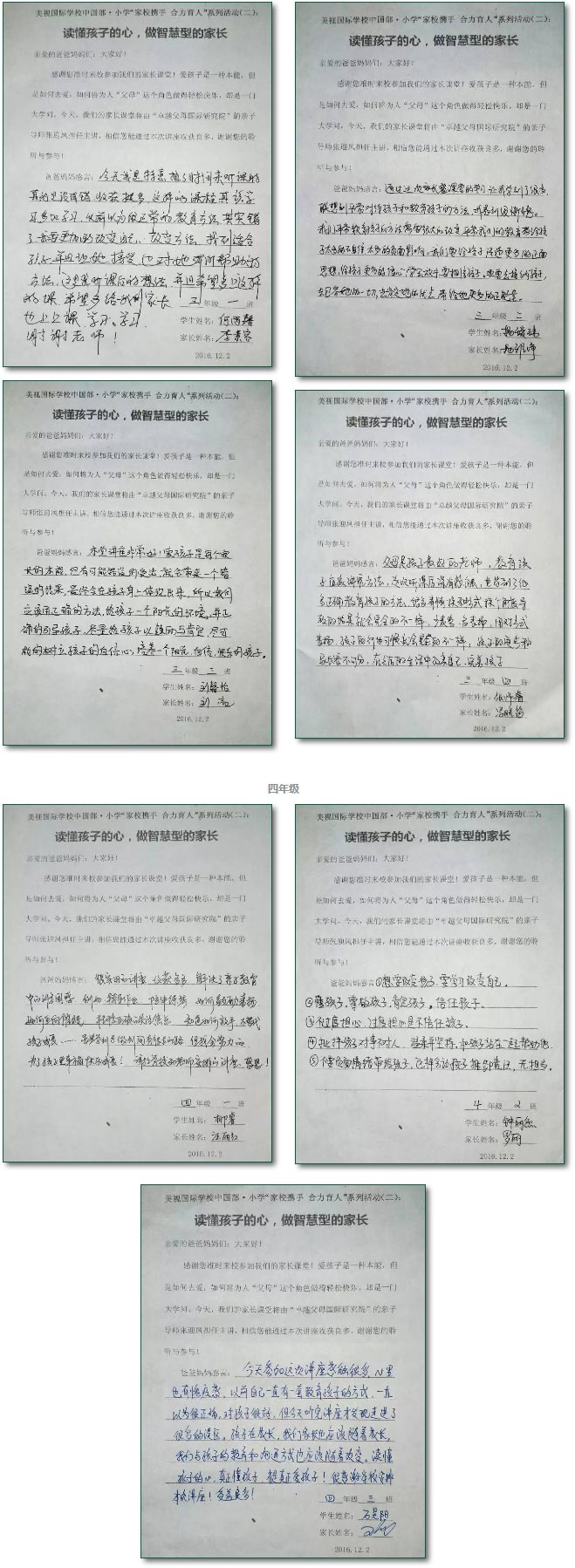 如果孩子是鳥,你就是天空; 如果孩子是魚,你就是大海; 如果孩子是花,你就是春天。 這首詩是寫給父母的,也是寫給老師的。是教育讓孩子的世界天高海闊,春意盎然。 2016年12月2日下午,國家注冊心理咨詢師、愛自然生命力家庭教育親子導師張迎鳳女士以“讀懂孩子的心,做智慧型家長”為主題,與中國部·小學三、四年級的家長分享了自己的教育理念。 該活動旨在幫助家長尋找更科學的育子方法,讓孩子健康快樂的成長。