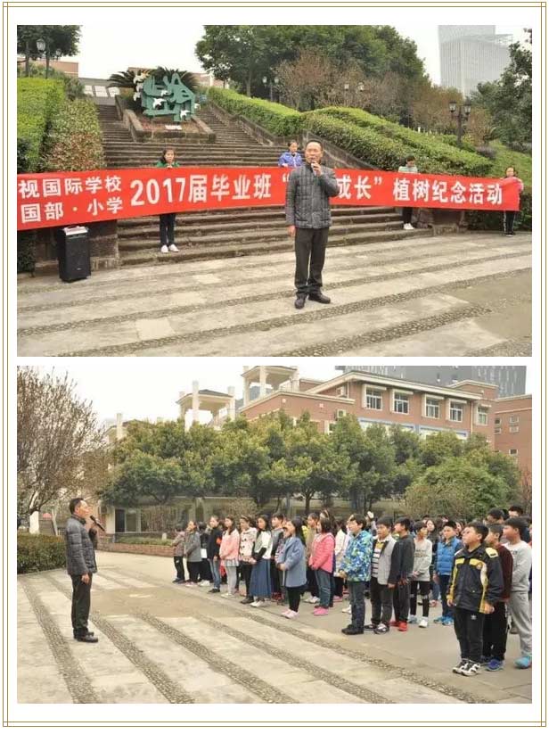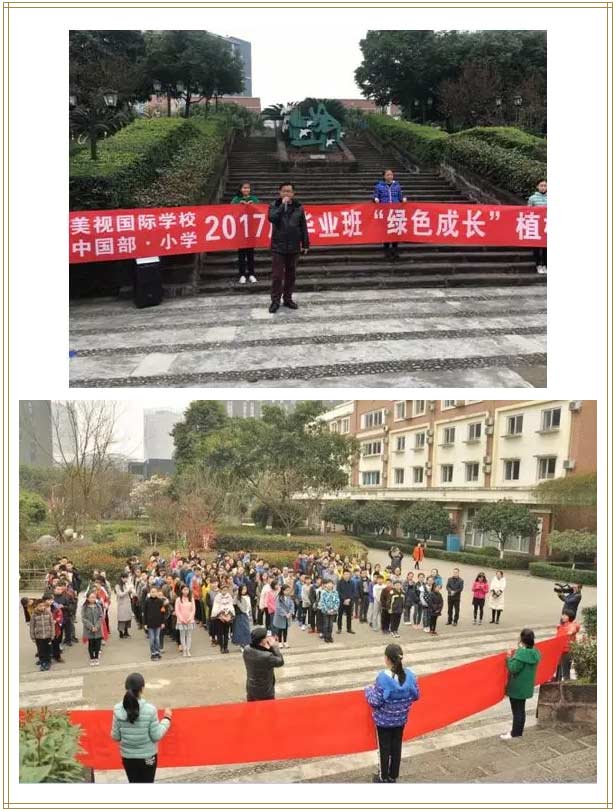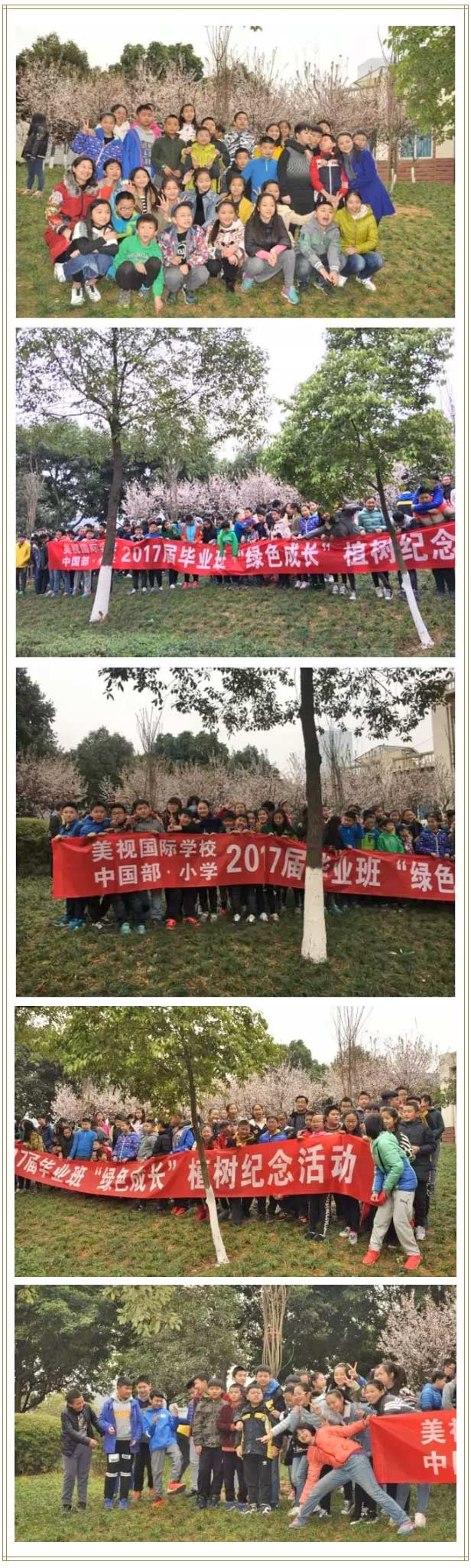 植樹紀念活動 傳統之美,在于傳承。 春,迷人的季節; 樹,希望的寄托。 在美視,每年植樹節,你總能看到莊重而溫馨的一幕。 中國部·小學都有一群小小畢業生,愿為母校的美增添一分溫情眷戀。于是,在每個植樹節,他們沐風荷鋤,演繹著一次又一次生命與愛的傳承。 “成長”從春天開始,由疏淡到蔥蘢;“成長”從綠色出發,由清淺入深郁。 近日,2017屆畢業班“綠色成長”植樹紀念活動也在微風中啟幕。 您的教誨,像春天飄散的種子。 “春天,是綠色的。綠色,象征著生命,代表著希望和夢想,也蘊含著感恩……春天,更是溫暖的……” 在生命臺階前,年級組長陳建軍老師幾句話,將活動的意義娓娓道來。