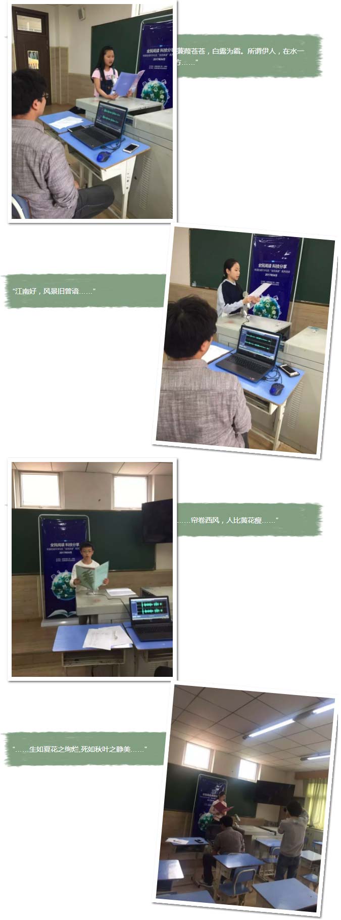 瞧,孩子們正在深情地朗誦著自己喜歡的詩詞、散文。