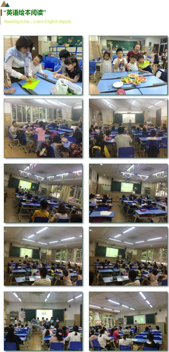 你想聽聽孩子們讀英語繪本嗎?你想看看孩子們自己親手制作的英語故事書嗎?你想猜猜英語的謎語嗎?你想在英語課上做可口的沙拉嗎?……