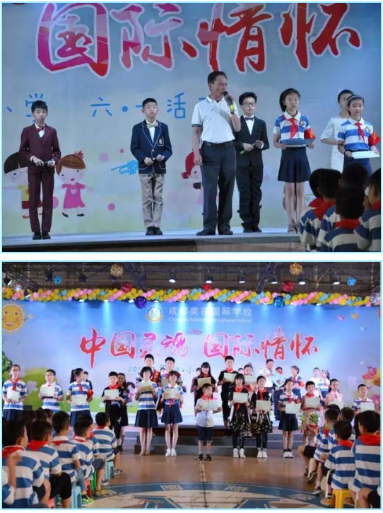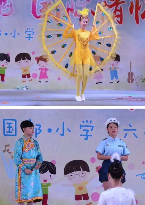 今天,我們在屬于我們的舞臺展示自我。在“中國靈魂 國際情懷”主題慶祝活動中自信大方地展示自我,我們活潑熱情,我們青春飛揚。我們會繼續乘著歌聲的翅膀展翅飛翔,在屬于我們的童年綻放最美的笑容。