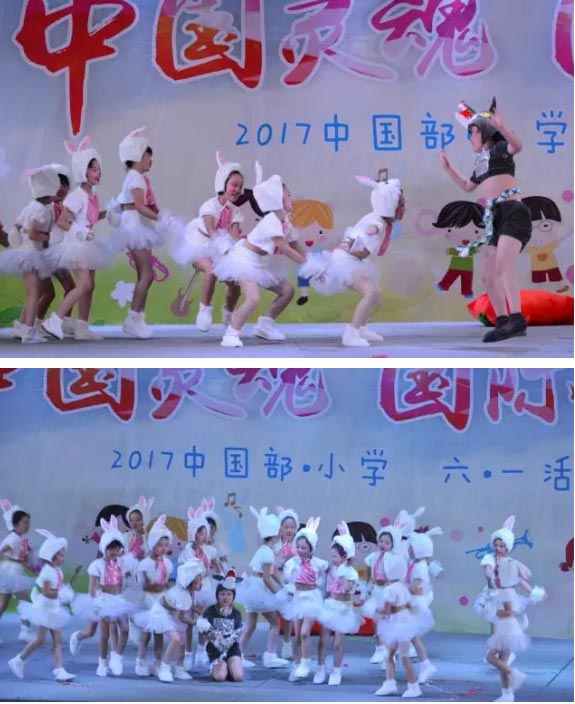 我們是聰明的小白兔,團結機智斗大狼;我們是勇敢的小白兔,你們喜歡我們嗎?中國舞《兔氣揚眉》的表演是一群活潑可愛的孩子。