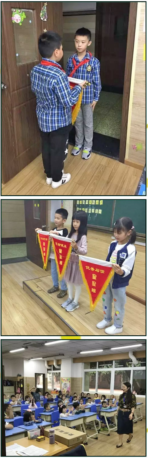 每周一早晨的期待 中隊榮譽之旗 一日之計在于晨。每個周一,中國部·小學的乖娃娃們會端坐在教室,靜靜聆聽那一面面象征著中隊榮譽的流動紅旗評價結果。 這樣的評價也為我們的特色中隊活動評價奠定了基礎。 在美視,我們不一樣,我們都很棒!每一個中隊都會為贏得那面旗幟而付出努力。 優秀習慣 “優秀習慣”流動紅旗著重對孩子們的常規習慣和課堂學習習慣進行評價。 參與評價的是校值周生、監督崗和我們的學科及生活老師。 校值周生重點對孩子們一天里的兩操、路隊和大小型集會的行為習慣進行監督和考量。 學科老師們則側重對孩子們的課堂學習習慣進行評價。 生活老師則對孩子們就餐、就寢進行評價。 運動健康 愛運動的美視娃,每天都會在老師的帶領下參加上下午大課間的體育鍛煉。 動作的標準程度、中隊精氣神兒都是考核“運動健康”流動紅旗的標準。 校值周生、體育老師及大隊部老師都將參與此項評價。 安全行動 無處不在的值周老師和校值周生,他們都站在監督大家安全行動的前線,有了安全的行動才有豐富多彩的校園生活。 美視的乖娃娃們都時刻把安全記在了心間。 因為這樣的優秀,所以在收獲了這面流動紅旗的時候,我們也看見了孩子們臉上露出的燦爛笑容。 讓集體榮譽感流入少先隊員心間 優秀是一種習慣 收獲每一面流動紅旗,都標志著每一個孩子都在為中隊的榮譽貢獻自己的力量。 由校大隊委組成的授旗隊伍來到各中隊,我們以這樣的方式進行接旗儀式,讓無上的集體榮譽感流入每一個少先隊員心間。 九月,秋風蕭瑟天氣涼,校園處處是溫暖。 中國部·小學以具有別樣特色的中隊主題為班級文化建設,讓置身中隊文化建設里的每一個少先隊員都與有榮焉,具有高度的主人翁意識。 祈望,美視中國部·小學的所有少先隊員,都在大隊系列活動中鍛煉自己,成就自己,努力向著光明那方,不斷前行!