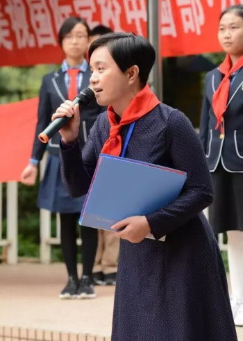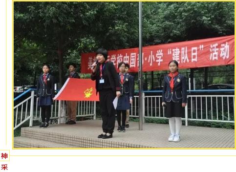 建 隊 日 光·榮·與·傳·承 10月13日下午,中國部·小學全體師生為紀念第68個“建隊日”,舉行了“光榮與傳承”主題大會暨新少先隊員入隊和新大隊委授牌儀式。 入隊新儀式 爸爸媽媽為我戴上紅領巾 中國部·小學為構建和諧美好的家校社區,培養孩子成為具有國際情懷和中國脊梁的國際人,讓校園處處彰顯傳承主題,讓傳承感染和影響每一位學生、家長和老師,讓其具有強大的感知、同化和行動力。