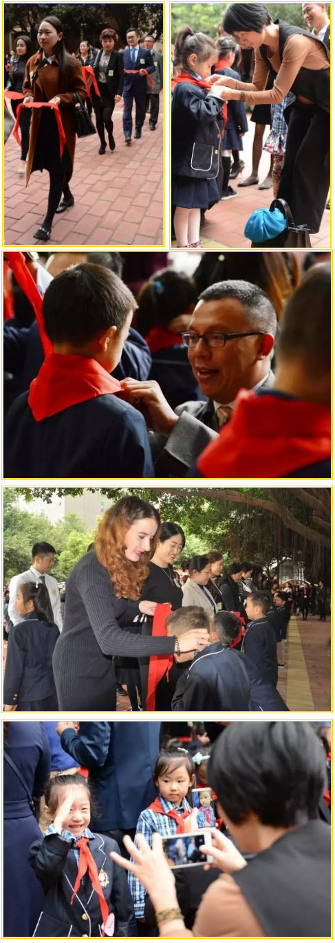 所以,在“建隊日”紀念活動中,我們特別邀請新少先隊員的爸爸媽媽來為他們佩戴紅領巾,共同見證他們的成長。