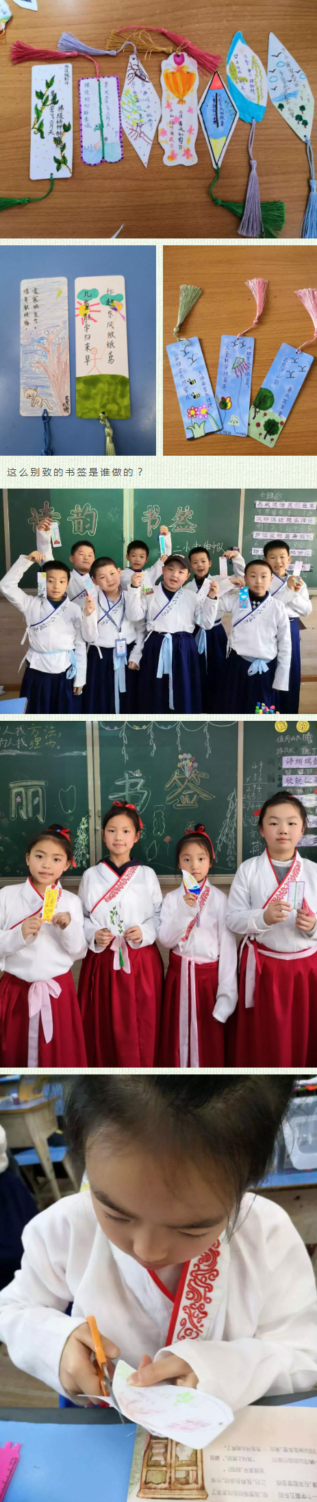 他們抄古詩(shī),畫(huà)古詩(shī),親手制作漂亮雅致的詩(shī)韻書(shū)簽。這一方小小的書(shū)簽,承載著他們一個(gè)大大的夢(mèng)想:我們愛(ài)中華,我們是傳承人!