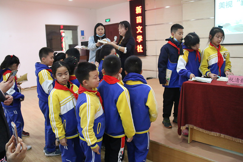 為了培養(yǎng)孩子們的文學(xué)素養(yǎng)和人文情懷,進一步豐富校園文化生活,激發(fā)學(xué)生的學(xué)習(xí)興趣,提高其審美、創(chuàng)新及寫作能力。11月16日下午,小學(xué)部新苗文學(xué)社成立暨首屆社團活動在融合部禮堂舉行。3、4年級文學(xué)社成員及五六年級學(xué)生代表、家長代表共計一百余人參加了這次活動,著名作家、四川省作家協(xié)會工會副主席稅清靜、四川省青少年作家協(xié)會主任賈文應(yīng)邀參加活動。