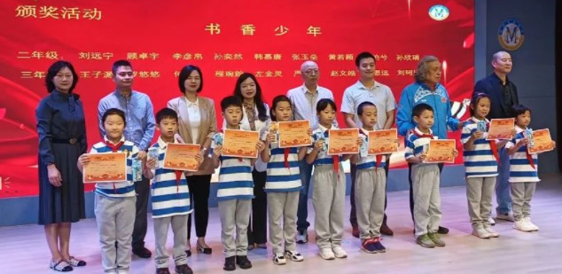 來賓頒獎:“書香少年、書香家庭、書香校園”。希望我們以文化人,環(huán)境育人。