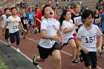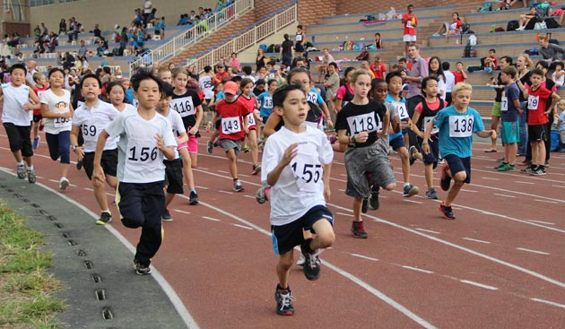 Cross-country根據(jù)選手年齡不同要求選手完成1.5公里至3.7公里的越野跑步,詣在為學(xué)生提供一個(gè)機(jī)會(huì)接近自然,增強(qiáng)體質(zhì),磨練堅(jiān)強(qiáng)的意志,體驗(yàn)挫折與成功。