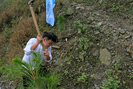 “嘿,起鋤......"在大自然親密的感召下,同學們通力合作、迎著新春的山風暢快揮鋤,笑聲遠飄山巒,一棵棵小樹苗便在這秀美山川中立直了腰板兒,開始自己的新一站征程。