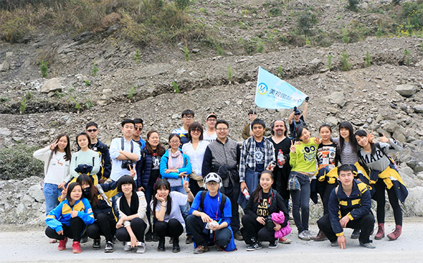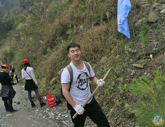 同學們與四川各地的志愿者們一起走進汶川縣映秀鎮,通過自愿認領和購買的方式,在映秀鎮種下300余顆松苗,為映秀山水增添了一抹新綠。