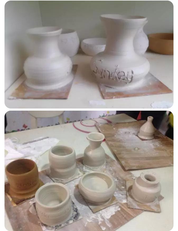 花瓶、水罐、壇子、碗等一一陳列出來,讓忙活了一上午的同學們成就感滿值。