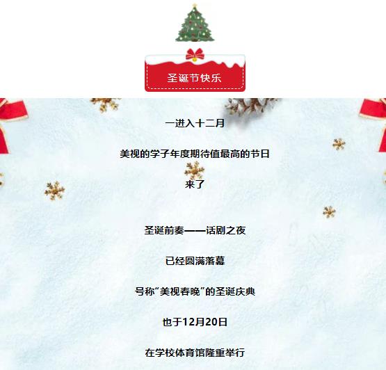 每年的圣誕節,都給孩子們一個最漂亮的舞臺上,為孩子們圓夢,因為每個孩子都值得最美好的圣誕夜晚。在課堂外,美視精心打造國際氛圍,舉辦“話劇之夜”“圣誕節慶祝”“國際日”“萬圣節”等特色校園文化活動,形成獨具特色的美視校園文化。