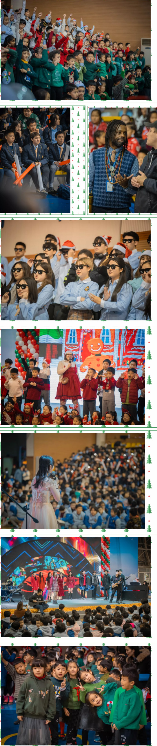 從一顆顆小小的PYPE“小圣誕樹們”,還有PYPC的“Beautiful Girls”身著旗袍舞姿曼妙,或是化身女特務來場T臺秀,再到MYP的樂隊表演和歌曲演唱,讓我們穿梭在電吉他的沸騰、鋼琴的溫潤、歌曲串燒的沁人心脾之中,以及女老師們驚鴻一舞青花瓷...現場表演是古典與現代的交替,無邊的樂海,令人沉醉;火熱的歌舞串燒,點燃了現場的氣氛。豐富多彩的節目,著實讓到場嘉賓眼花繚亂...