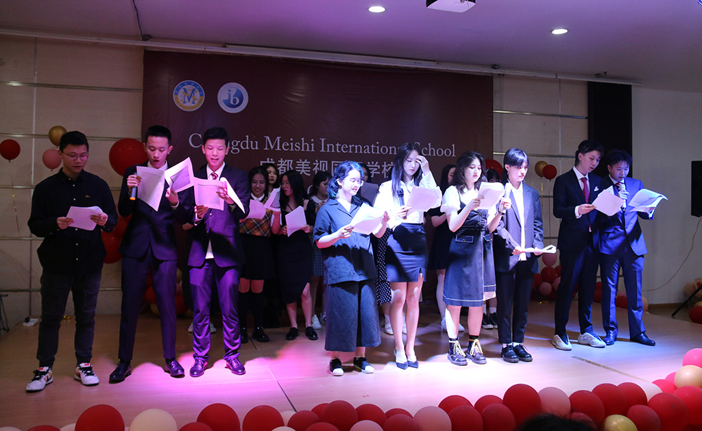 畢業生學生會主席Bobby在最后發言,他分享了自己任期中的兩大成就:學生代表例會與IB生存手冊的完成,衷心感謝學校的對畢業生的培養,祝愿全體同學未來更美好。
