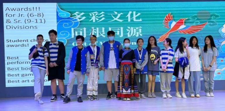 這次活動6-11年級全體同學均參加,他們以“Out of Many, One多彩文化,同根同源”為主題,以小組為單位,每個小組代表一個我國的少數民族(包括苗族、回族、藏族、彝族、傣族、維吾爾族等),并通過展板、視頻、演出等方式宣傳民族文化。