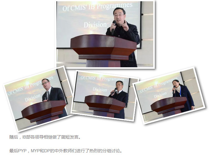 “我校融合部的成立,將使在IB三個項目工作的教職員工更加統一思想,統一認識,加深對IB的理解,分享項目的全方位資源,進一步提高在我校實施教育國際化的廣度和深度,使學習者社區的所有人終身受益無窮。馬克思說:“在科學上是沒有平坦的道路可走的,只有那些在崎嶇小路的攀登上不畏艱險的人,有希望到達光輝的頂點!”IB的每個項目都具有極大的挑戰性,即使獲得授權也只是“百尺竿頭”。但也正因為它的全球領先,高難度,高認同,才使我們這些有志于從事教育國際化的教育者認識到這項使命的偉大意義,從而勇敢地迎接這些挑戰。女士們先生們,讓我們攜手并肩,為使中國西部地區的教育國際化更加深入,為培養出杰出的世界公民做出自己的貢獻!”(陳頎董事)