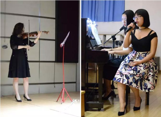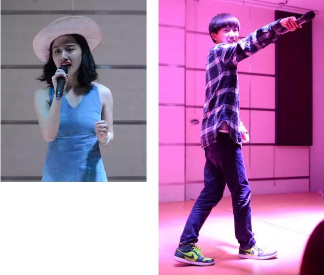 比賽當(dāng)晚,融合部禮堂燈光熠熠,座無虛席。選手們精心備戰(zhàn),俊男靚女,星范兒十足。和原版的“我是歌手”節(jié)目一樣,每位選手都配備一位專屬“經(jīng)紀(jì)人”,幫助他們臺前幕后的準(zhǔn)備工作。《月半小夜曲》、《年輪》、《All of Me》、《老男孩》......中文歌曲、粵語歌曲、英文歌曲輪番上陣。獨唱,合唱,更有師生二重奏配樂演唱......
