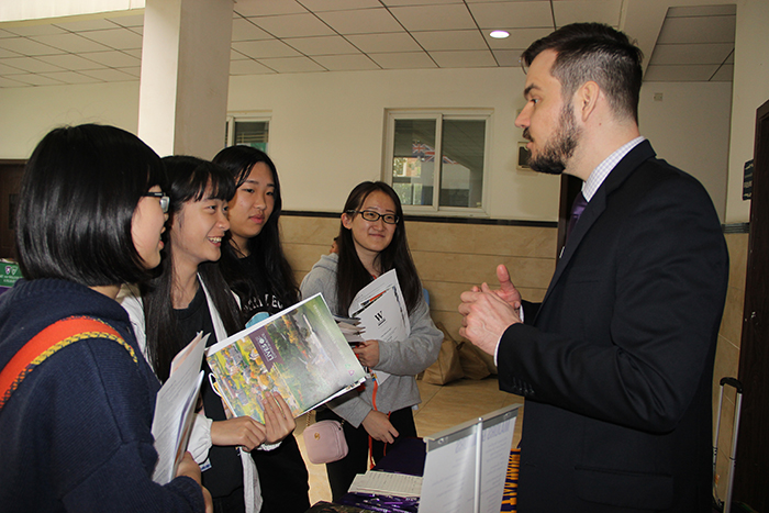 2016年3月21日,來自海外23所大學的招生代表來到我校國際項目部舉行招生咨詢會。我校國際項目部高中學生和中美英才班學生參加了此次咨詢會。招生代表們首先在禮堂舉行了簡短的招生宣講,接著同學們在現場和各位招生代表進行了一對一的面談,有意向的同學還填寫了報名表和領取了相關資料。這種面對面的招生咨詢會對我們的學生來說是一個了解大學的良好契機,對自己今后選擇和申請大學有很大的幫助。