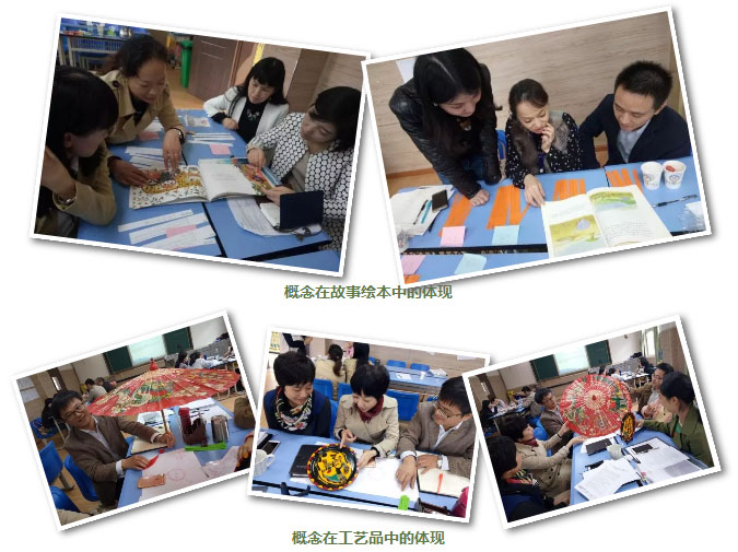 同時,學習者從“概念在故事繪本中的體現”、“概念在工藝品中的體現”等實例中進行分析,在探究過程中逐漸清晰地認識到概念驅動課程的操作流程。