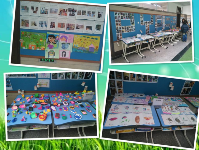 看, 二年級PYP項目班分別在各自的教室里,演繹本期的三個超學科探究主題的研究線索、探究結果、學習所得。教室的外墻,是我們活動過程的展示照片。橫排擺放的桌子上,也陳列了我們琳瑯滿目的探究作品。