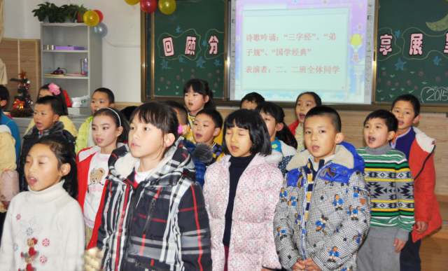 瞧,二(2)班的同學們個個精神抖擻、笑容滿面地吟誦著《國學經典》和優美詩歌,以最好的姿態展示著自己的風采。