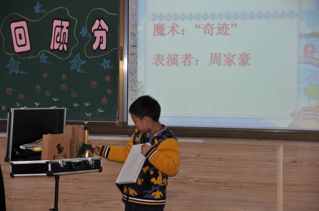 二(2)班的小魔術師——周家豪給大家帶來了精彩的魔術表演。只見他瞬間憑空變出了一把扇子,小伙伴們眼睛睜得老大,卻教他突然又變出許多糖果來……引得臺下的同學和爸爸媽媽時而驚訝,時而歡呼,連連贊嘆小小魔術師技藝非凡呢!