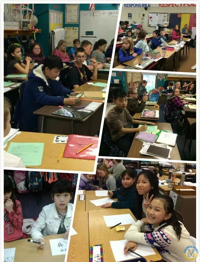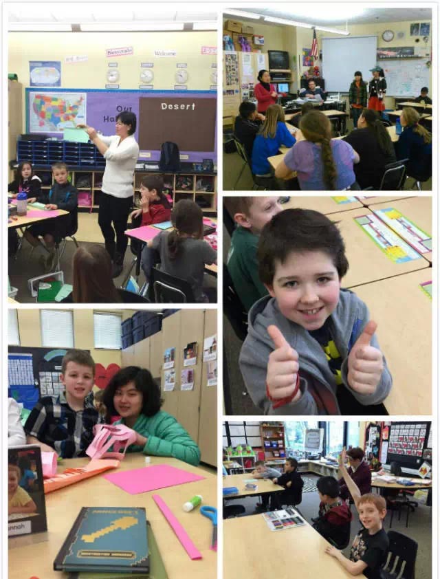 Aumsville小學組的帶隊老師今天的教學任務也很重,需要接著給6個班的孩子上課。因為今天和明天是給3-5年級學生上課,我們的營員們就是插班在這些班級中,所以每到一個班都能看到自己的孩子,我們也可以觀察到孩子上課的表現,以及與外國同學的融入情況。