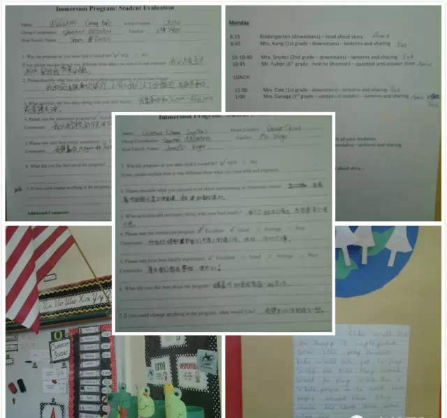 今天來到學校的第一件事情帶隊老師就及時了解孩子們的周末情況,身體狀況,心情如何;調查結果顯示孩子們周末過得都還不錯,直到現在都還沉浸在美好的回憶中。在活動評估表上,大家不約而同地寫著“最喜歡和美國家庭在一起”。