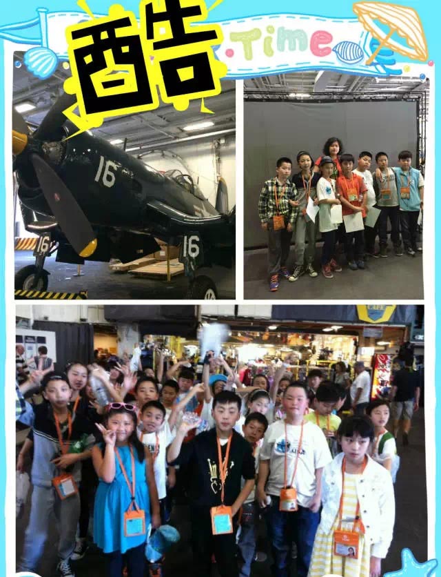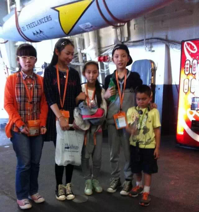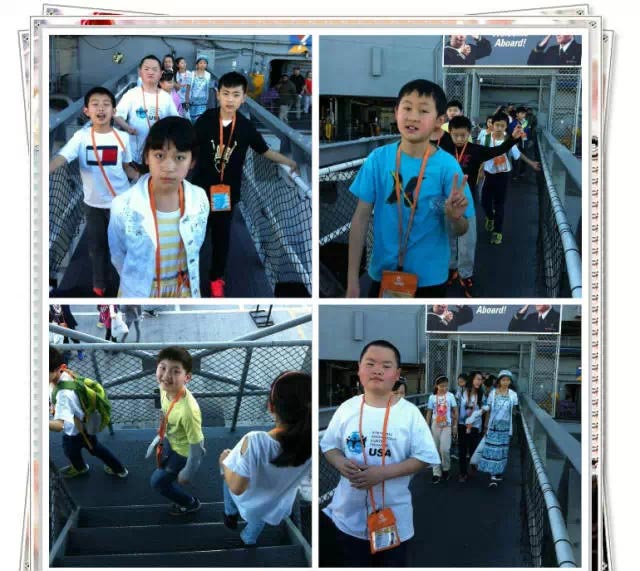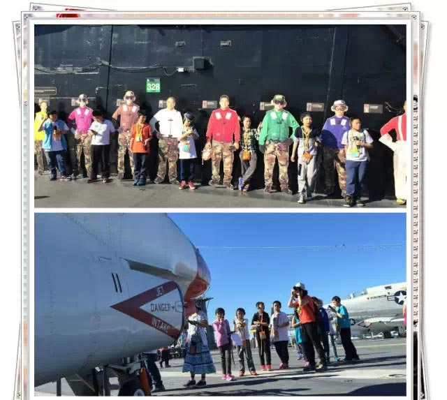 午餐過后,營員們參觀了“中途島號”航空母艦,途中還發(fā)生了一個小插曲:有個美國孩子被鎖住了,我們的小朋友發(fā)揚國際主義友愛精神,紛紛安慰他。美視的小朋友,贊一個!