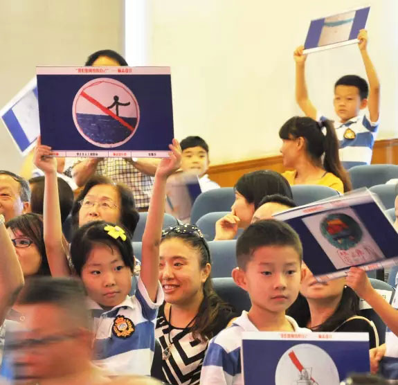 呼啦啦......學術廳突然躥出許多孩子,他們高舉著標志牌,有序地端立在家長們身側。