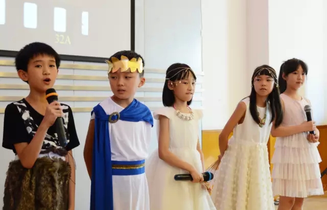 三年級的孩子們則通過服裝、小品詮釋了世界古代文明,古羅馬斗獸場、龐貝古城......此間知識涉獵范圍之廣,附以多樣的表現形式,令人眼花繚亂,對一個個小演員更是由衷景仰。