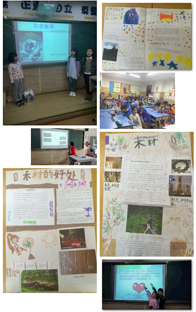 孩子們根據(jù)各組提出的問題,主動去探究,利用信息技術(shù)課或者周末時間將自己收集的資料進行分析整理。整理成果有的做成小報,有的做成精美的PPT。有的班還利用周日返校開展家長課堂或?qū)W生課堂。參加講座的家長或?qū)W生準備的話題內(nèi)容豐富。他們有的講水資源,有的講太陽能,有的講森林資源,有的講礦產(chǎn)資源,有的講石油,有的講垃圾分類,有的講保護地球,有的講走進低碳生活……真的是“八仙過海、各顯神通”??!