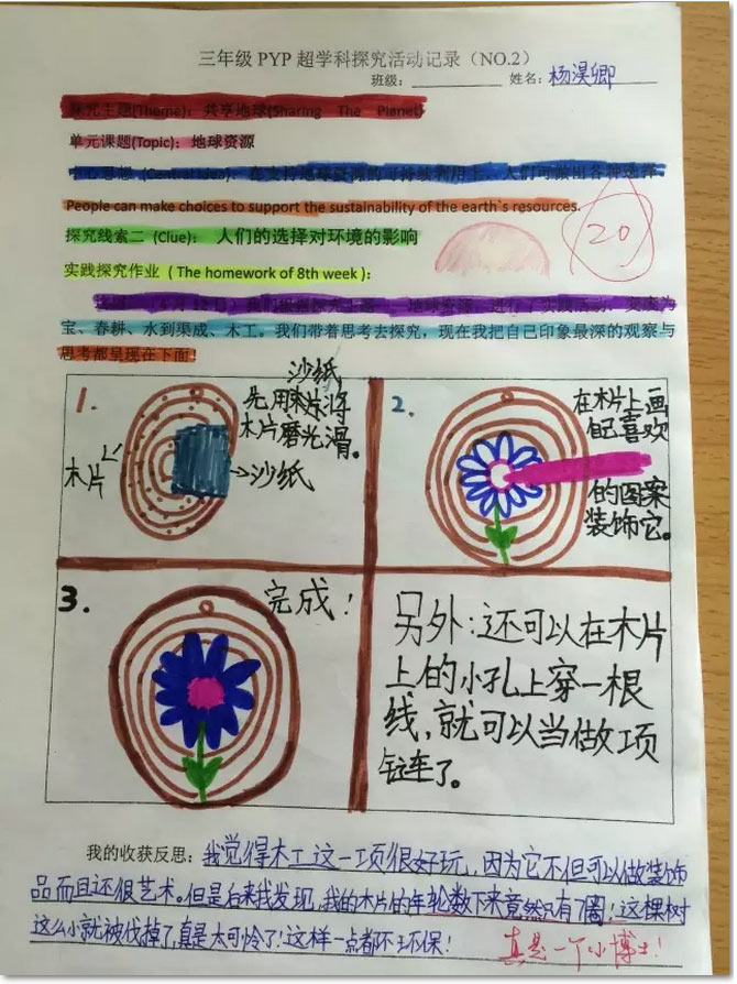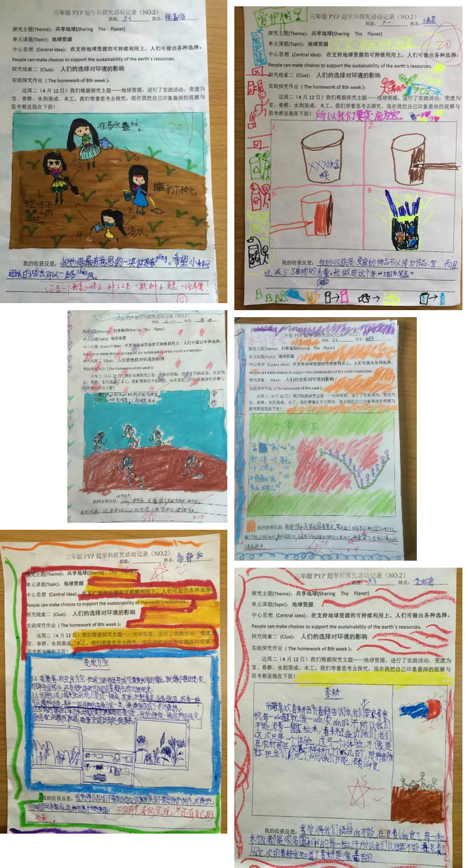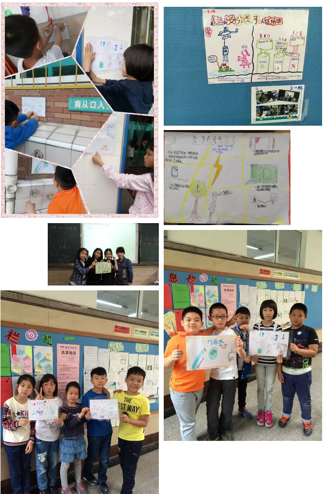 在“世界地球日”到來之際,孩子們根據(jù)前幾周的探究學習,進行了反思:為節(jié)約資源,愛護環(huán)境出一份力,盡一份心。孩子們精心設計了“珍惜地球資源”的宣傳標語,不僅在班級里展示了自己的設計作品,還把作品張貼在校園各個角落,以此警示大家要努力做到珍惜資源,節(jié)約資源,合理利用資源。讓大家樹立了“低碳生活”從我做起、“環(huán)保行動”從身邊的小事做起的良好意識!