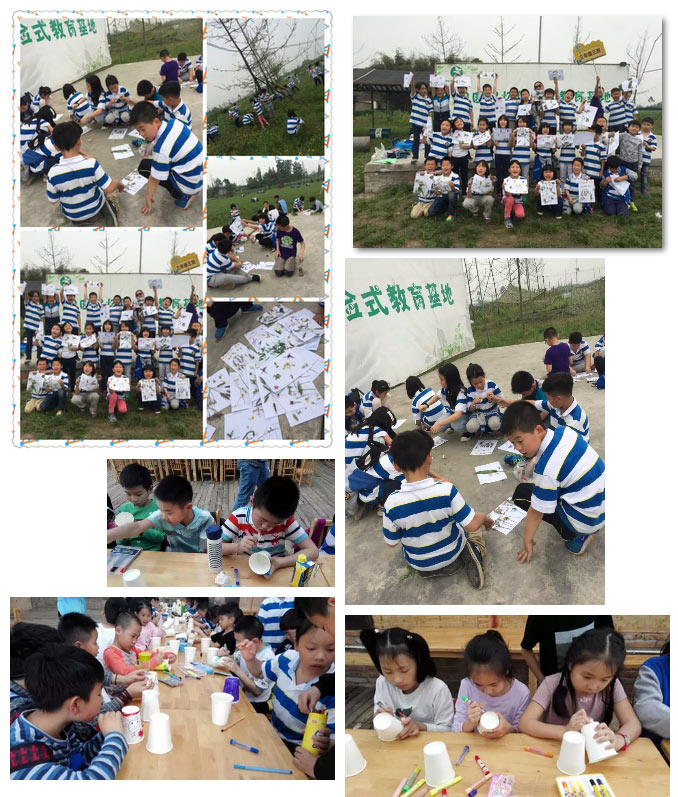 首先我們來到了第一個變廢為寶的場地。老師發(fā)下兩個紙杯子,叫我們利用工具,對它進行再創(chuàng)造。隨便怎么剪,隨便怎么粘。一聽這里,我腦洞大開!哈哈,看王大師小手一揮,杰作立現(xiàn)!我首先在一個紙杯上畫滿小魚。為了畫得快,線條盡量簡潔。我把紙杯子拿到同學面前,慢慢旋轉(zhuǎn),問他:“這上面有多少條小魚?”他眼睛都看花了,也沒數(shù)清楚。我說:“無窮大。因為我一直在轉(zhuǎn),所以它一直重復啊重復……”第二個紙杯擺在面前,我要用來做一條章魚。我首先在杯底畫了一對鼓鼓的黑眼睛,又畫了一個夸張的歪嘴兒。接著,用剪刀在杯口處剪許多條條,把它搓成卷起的條兒,就變成觸須了。最后,我還在它頭上畫了可愛的蝴蝶結(jié)??雌饋砘顫姌O了!